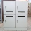 こちらは、オカムラ社製の4人用パーソナルロッカーになります。すべて鍵が揃っています。こちらはロッカーの中に、携帯電話などを充電できる、ACコンセントがあります。郵便物用の投函口もついていますので、個人情報を取り扱う部署などの入り口で、携帯電話の持ち込みができないお部屋などに最適です。尚、こちらの商品につきましては、複数の在庫がございます。是非オフィスワンのショールームにてご覧くださいませ。